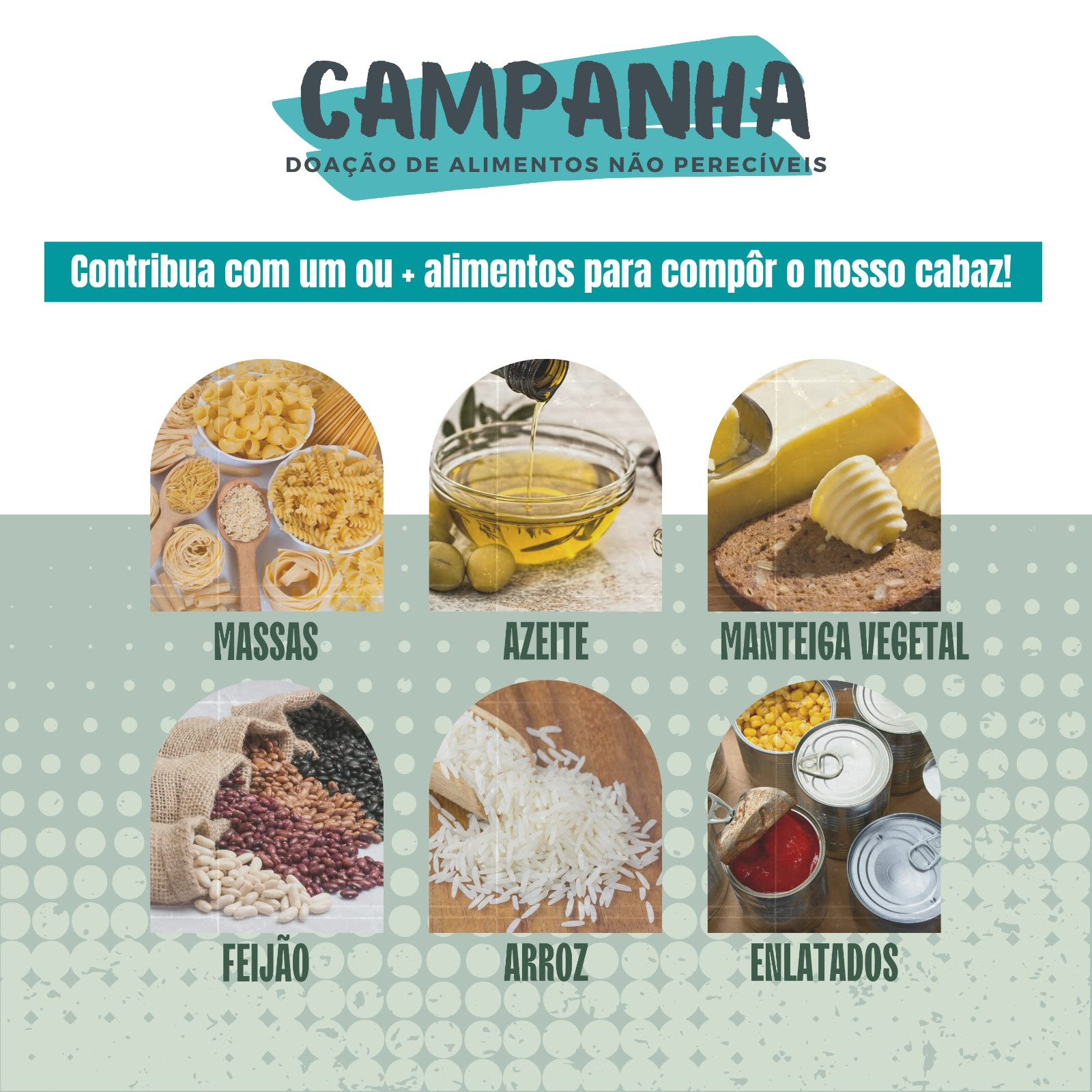 Faça parte da nossa causa! Contribua com um ou mais alimentos não perecíveis para encher o nosso cabaz de amor e esperança.
